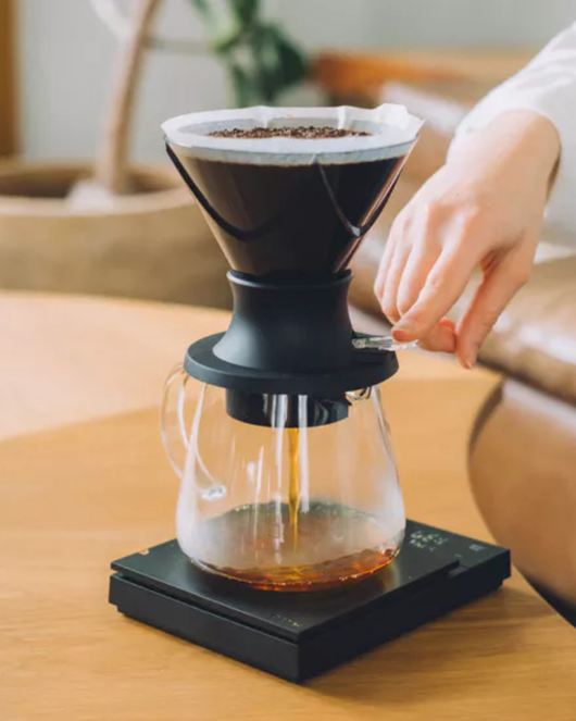 The Hario Mugen x Switch Dripper (Black) is a hybrid brewer that brings together the elegance of pour-over and the depth of immersion in one clever design. With the flick of a switch, you can brew in “steep mode” to draw out full-bodied richness, then instantly switch to “drip mode” to finish extraction cleanly and precisely.