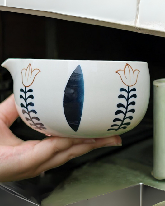 1. وعاء الماتشا (تشاوان): مصنوع يدويًا من السيراميك عالي الجودة، يوفر المساحة المثالية لخفق الماتشا وتقديمه، مع تصميم يعكس البساطة والهدوء الياباني.